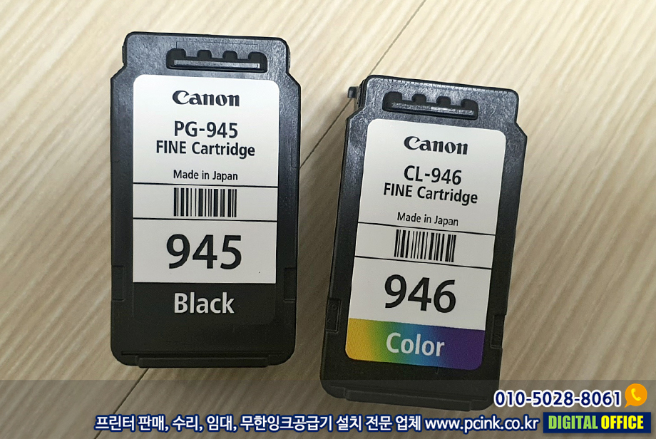 는 검정과 컬러 총 2가지 카트리지를 사용하구요 ( #PG945 #CL946 )